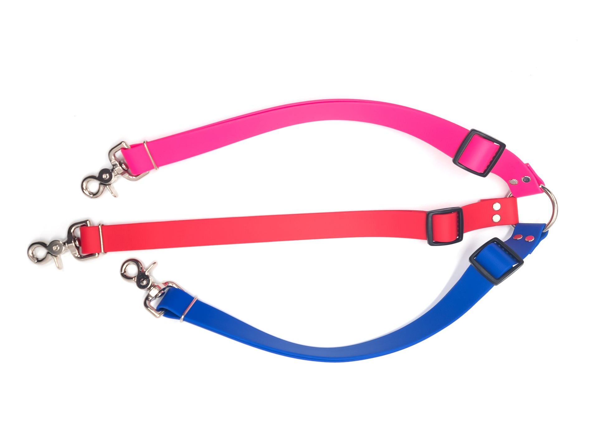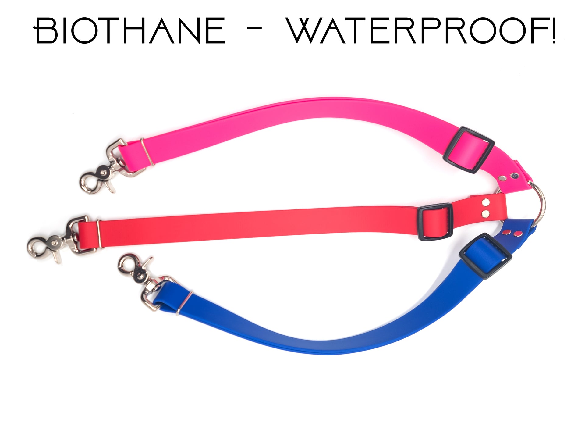 Adjustable coupler made from our popular Biothane coated webbing. Easily walk three dogs with just one leash! Rainy days and muddy puddles are no match for this wipe-clean, waterproof webbing.