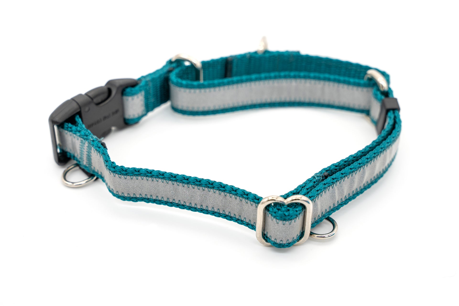 Breakaway buckles or breakaway clasps will pop open with a certain amount of force and do not require a human to do so. Breakaway clasps are ideal for unsupervised activities. Use with a leash requires the leash clip to be clipped to both D-rings to bypass the breakaway feature. Failure to secure both D-rings on a leash or tie out will result in the collar falling off and the dog getting loose.