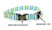 Adjustable collar features a unique plastic breakaway clasp that will come loose if your pet gets caught on something (fence, crate, heat vents, another dog, etc). Always clip your leash to BOTH D-rings in order to bypass the breakaway function. Each collar features a second "regular" quick-clip buckle (your choice of plastic or metal) allows for quick on and off for normal use without causing wear on the breakaway clasp. Click here for engraving tips and recommendations.