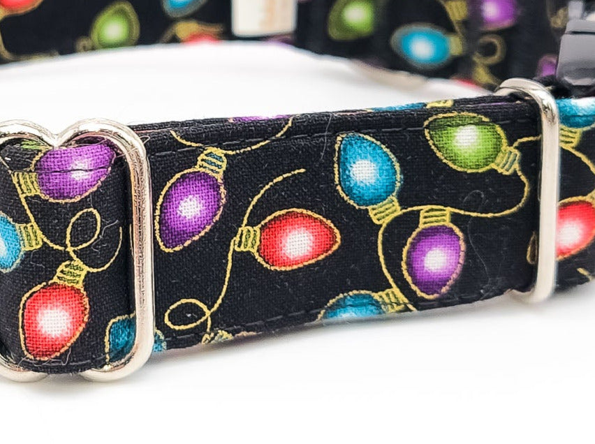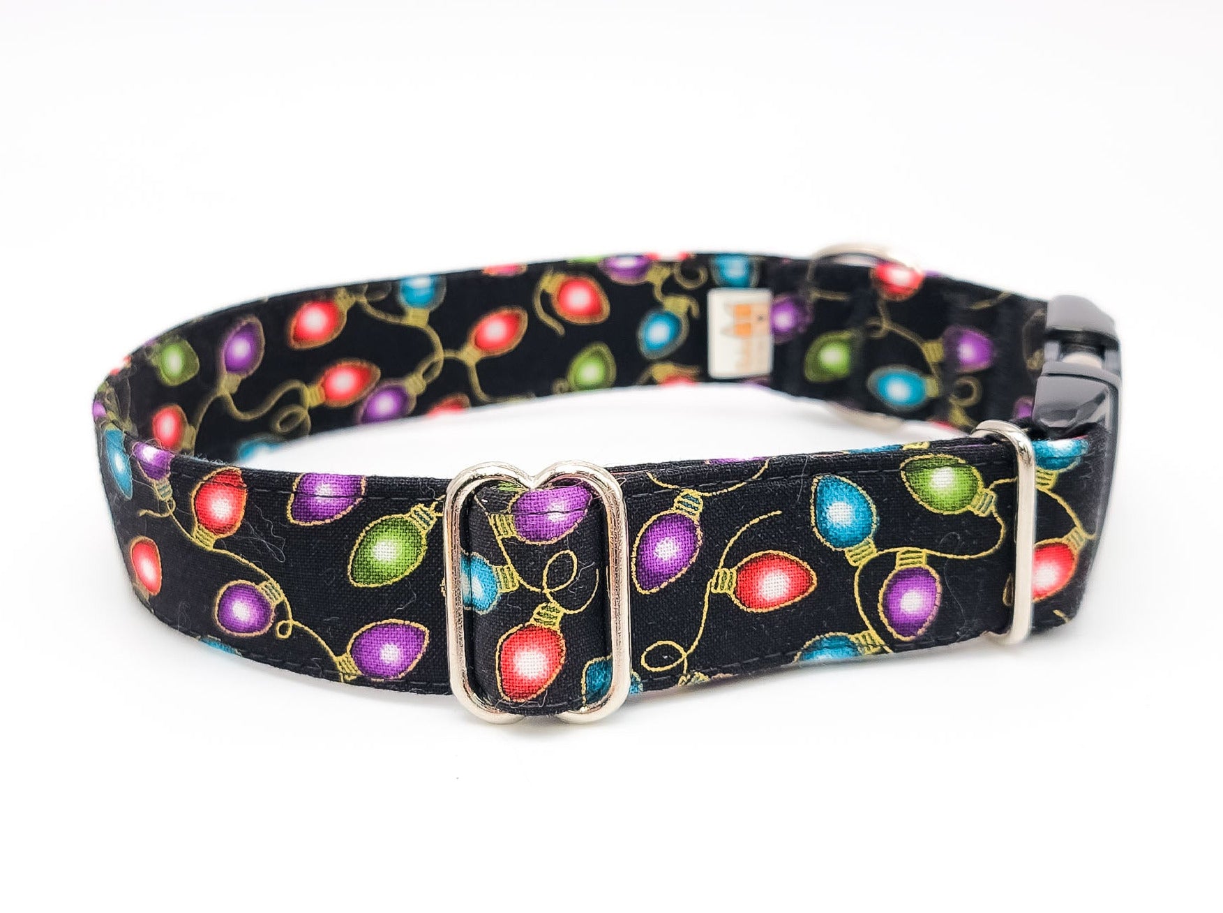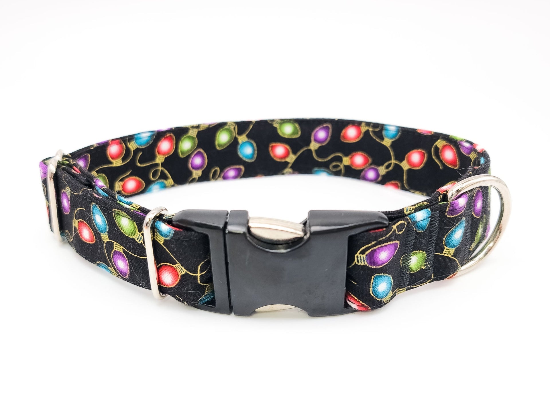 Christmas Lights | Cotton Fabric | Flat Side Release Collar | Medium 11"-17" in 1" wide
