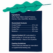 Duck Organ Meat, Sweet Potatoes, Carrots, Kale, Goat Milk, Blueberries