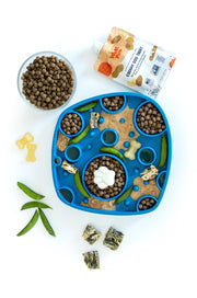 Please follow your vet recommended dietary guidelines based on your dogs age, weight and breed. Also follow indicated amounts based on your dog food choice. The unique design allows for the food to be spread out for the dog to sniff and explore.