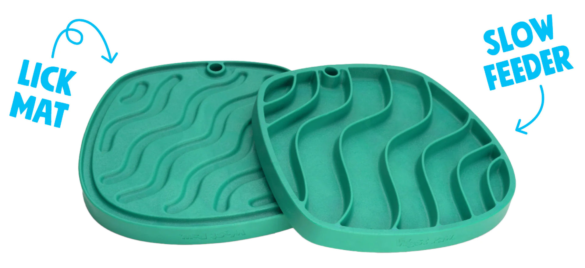 - The Feast Mat™ has two sides: Slow Feeder that allows for healthy food exploration and Lick Mat that helps reduce stress and anxiety