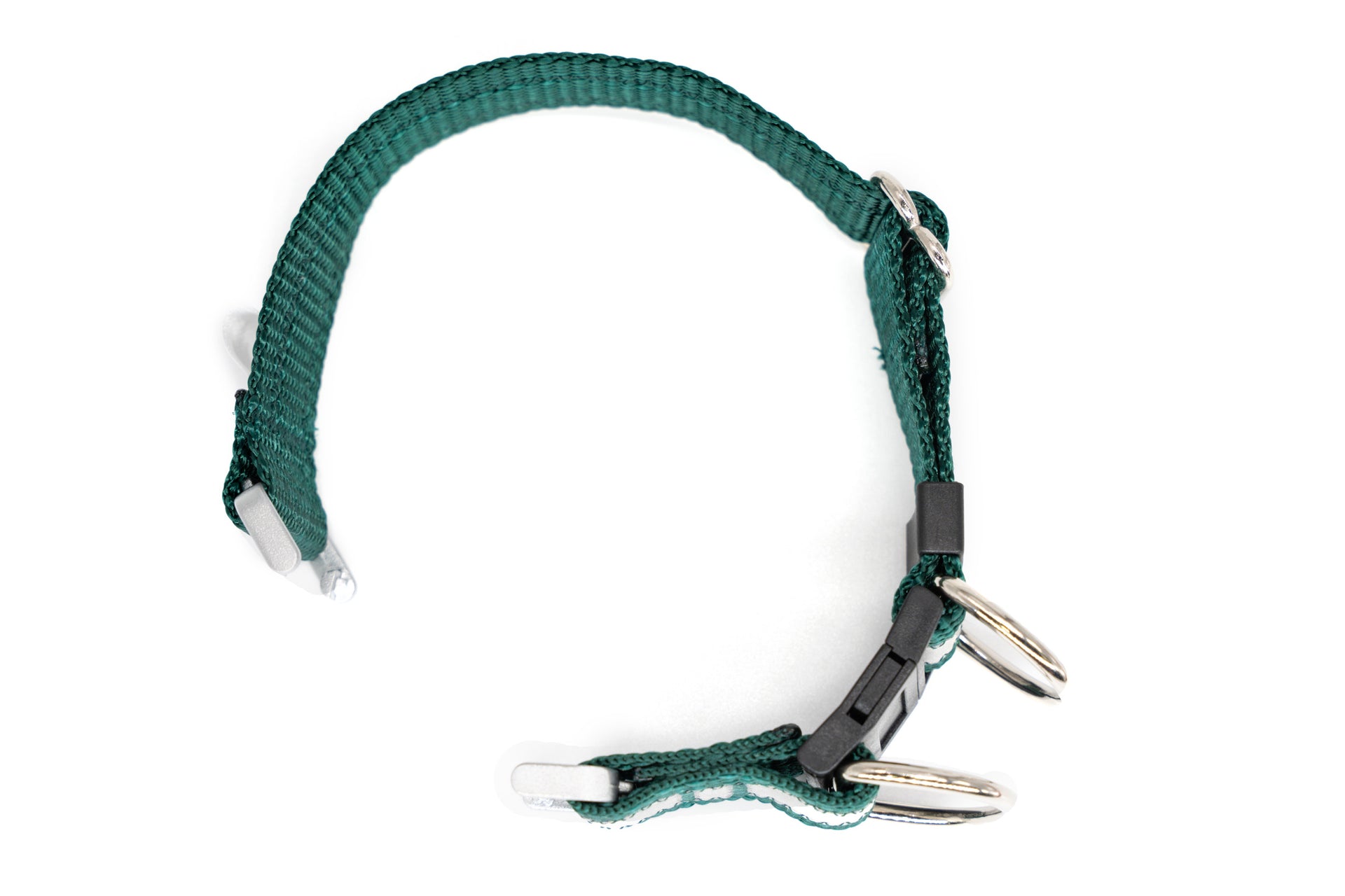 Fox Valley Pet Wear breakaway collars come with a proprietary buckle reinforcement to prevent accidental breakaways more common with larger or heavier dogs (M-XL sizes only). Buckle reinforcements are removable, replaceable, and adjustable - instructions are included with purchase.