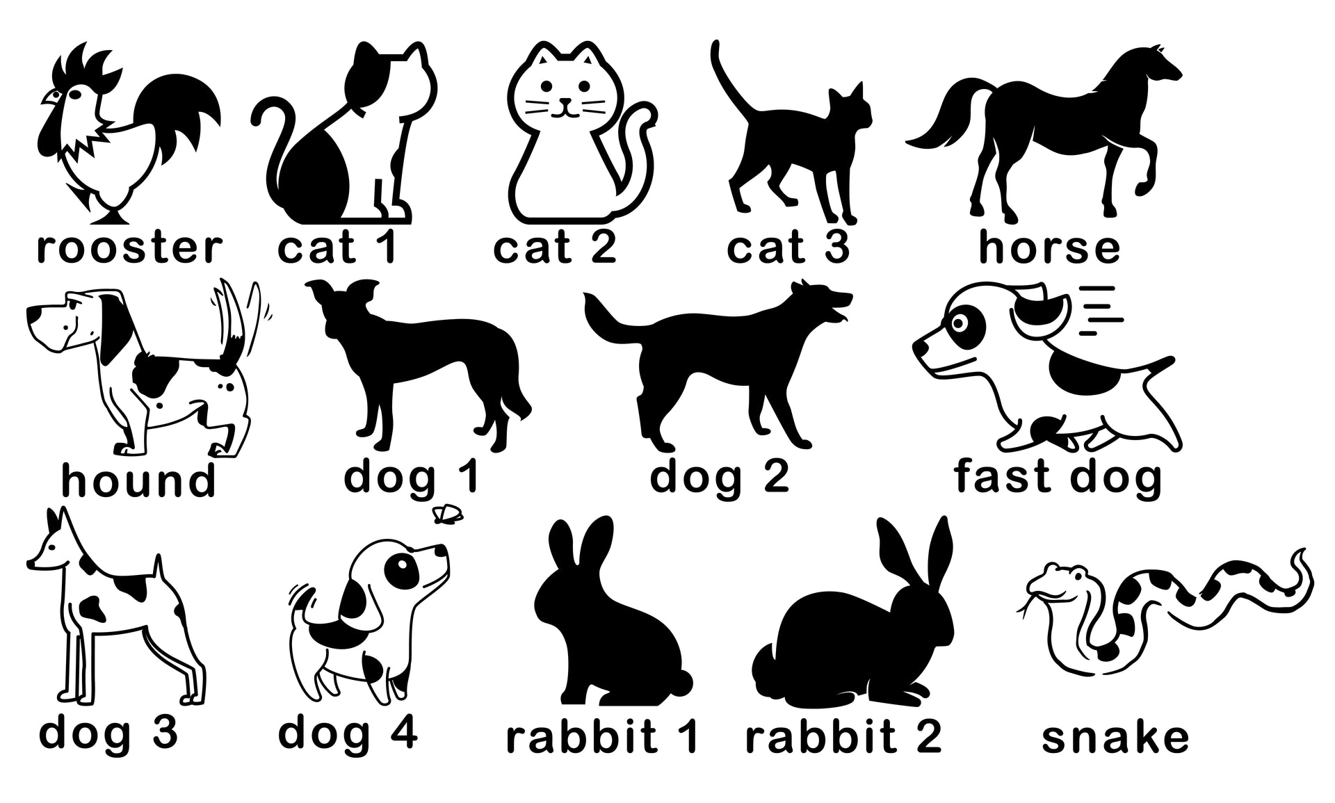 Front side - your choice of animals and coordinating text.