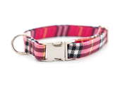 Hot Pink Plaid adjustable dog collar, small, 5/8" wide