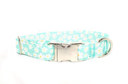 LAST ONES - Spring Floral Aqua Adjustable Dog Collar - S, M, XL