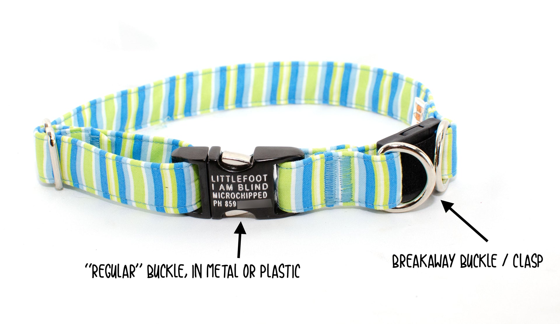 No, metal buckles are not breakaway. HOWEVER - Choosing a metal buckle will not affect the breakaway function of your collar! Each of our dog breakaway collars have two clasps - a traditional side-release buckle that you must 'pinch' to open AND a plastic breakaway clasp.