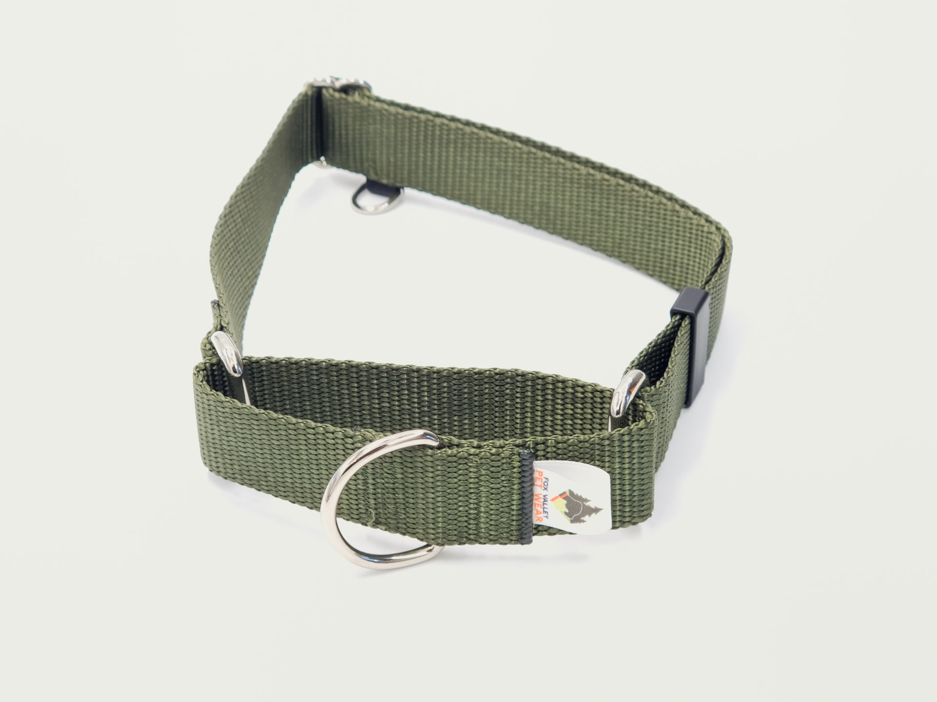 Olive Drab Martingale | Large in 1" wide | mini tag ring upgrade