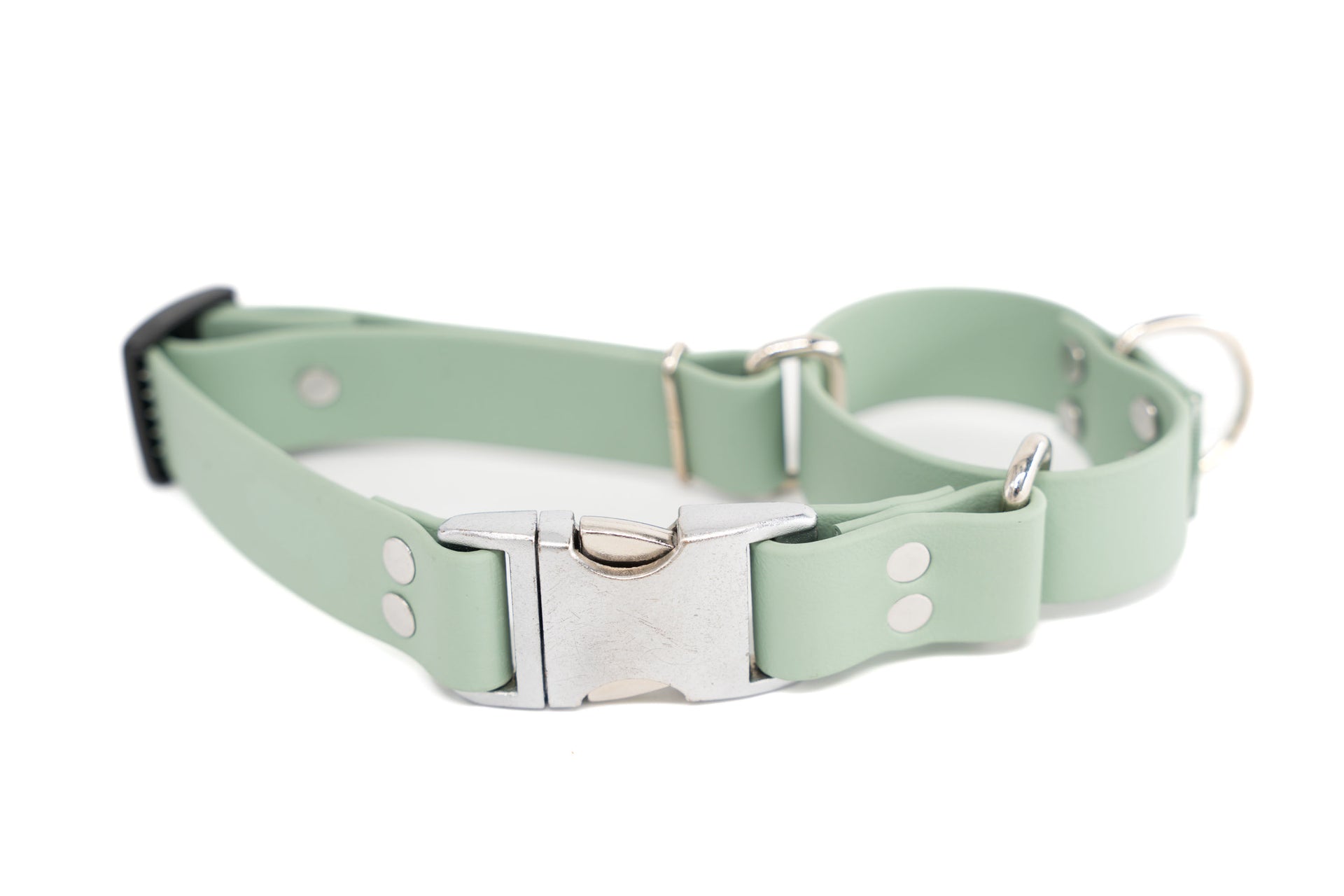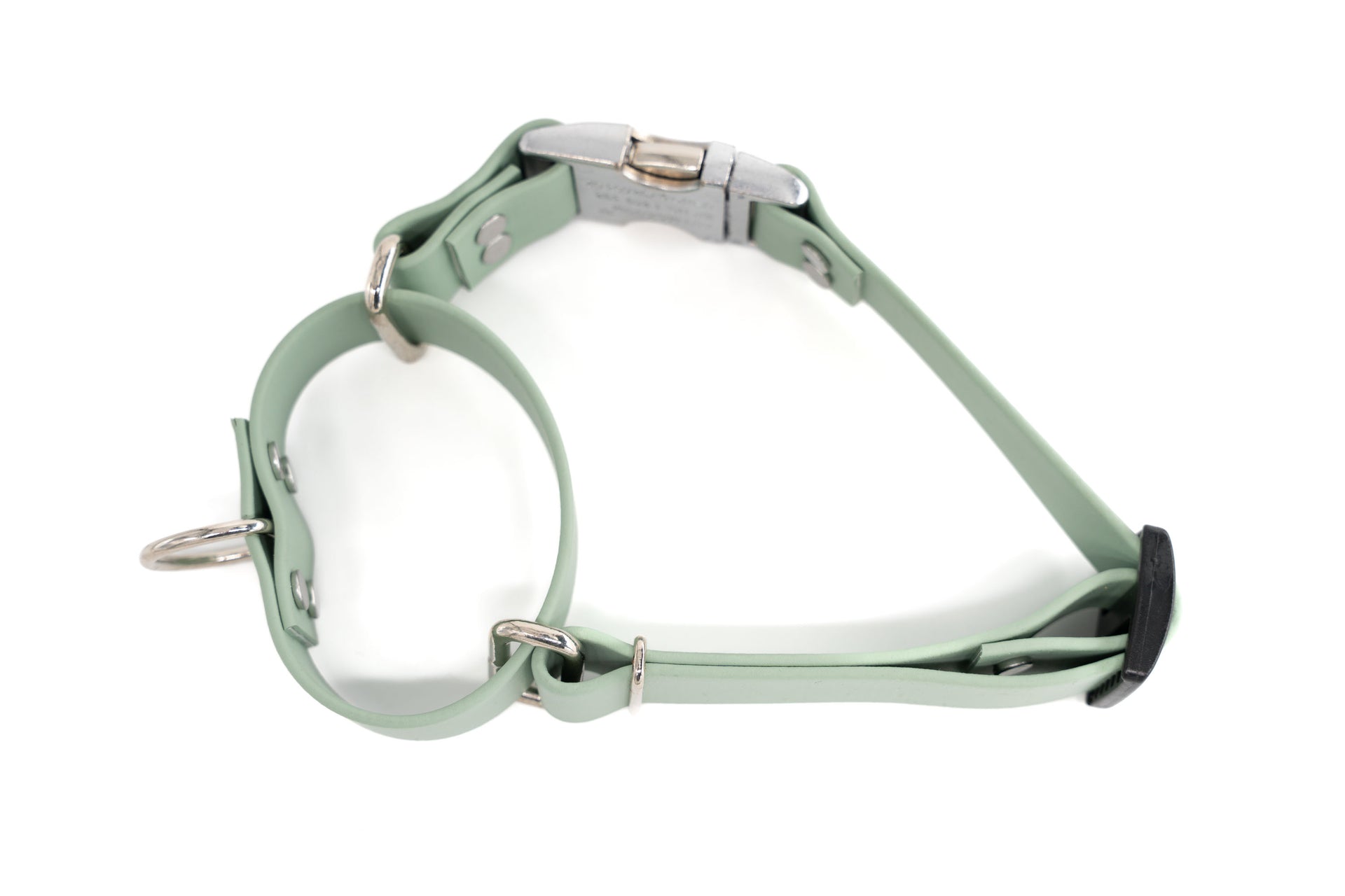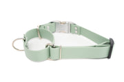 Quick Release Martingale | Waterproof Biothane | Sage | Large 16-20" | 1" wide | factory-distressed silver metal buckle
