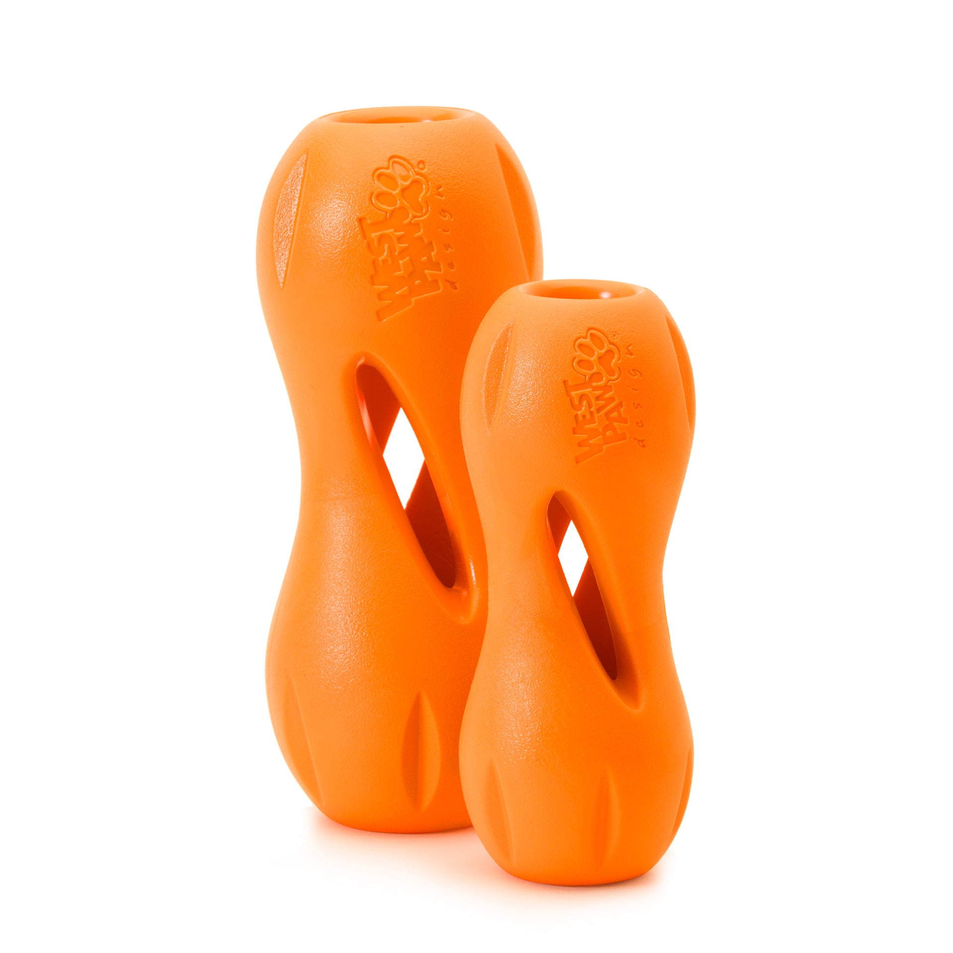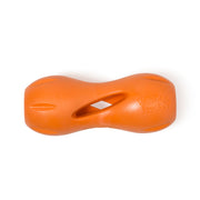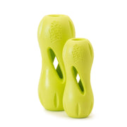 Qwizl is a super tough treat toy that's brilliantly designed to extend the life of expensive dog treats while keeping dogs busy. Side openings release scent and taste while the continuous interior hole allows treats to extend out. Flexible ridges grip multiple sizes of treats.r