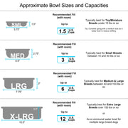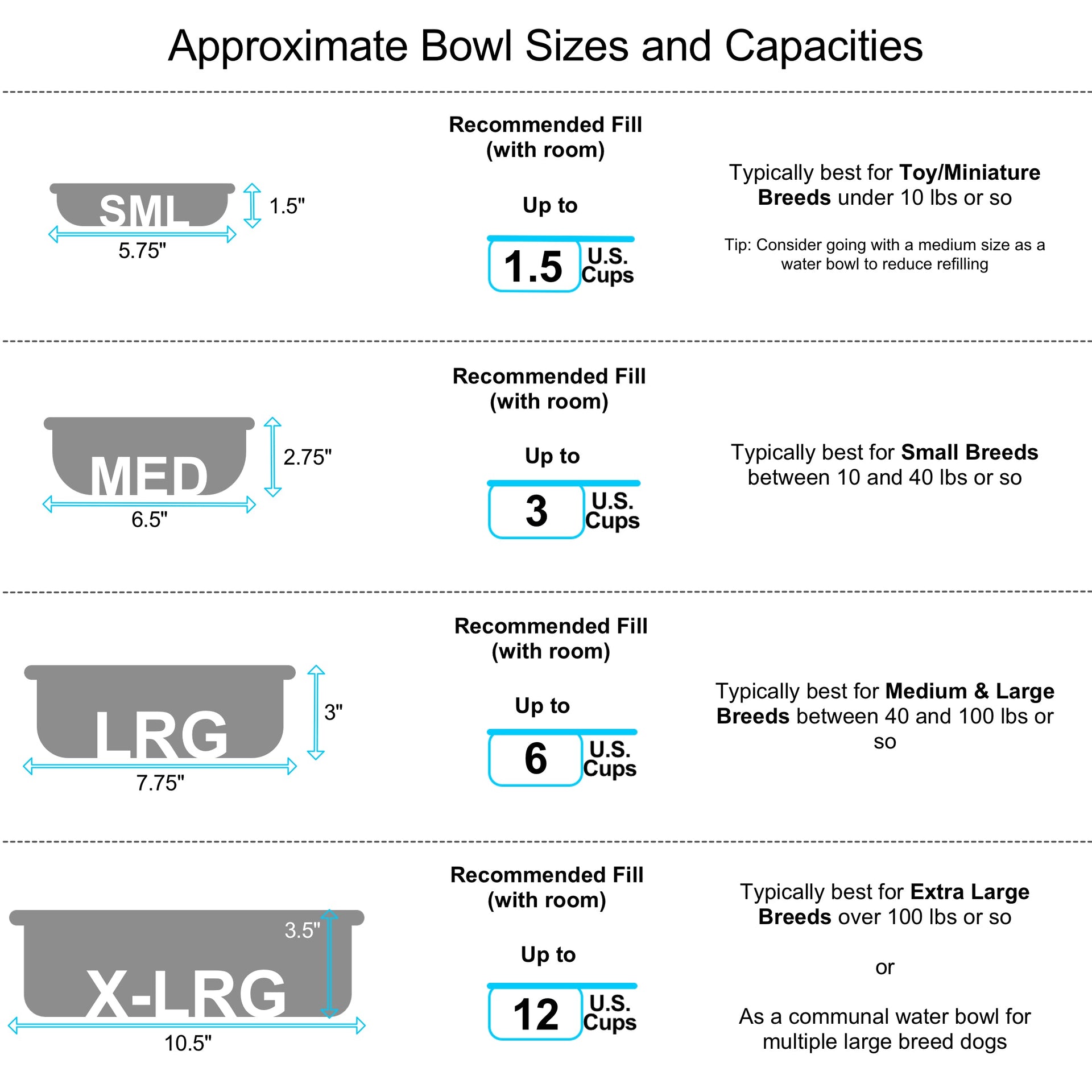 Tip! When selecting the best bowl size, it's important to consider not just how much food or water it holds, but also the size of the bowl relative to the size of your pet. We've factored this into our "typically best for" guidance below.