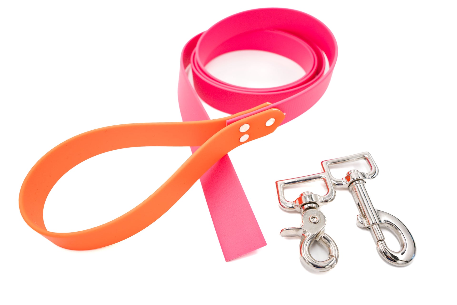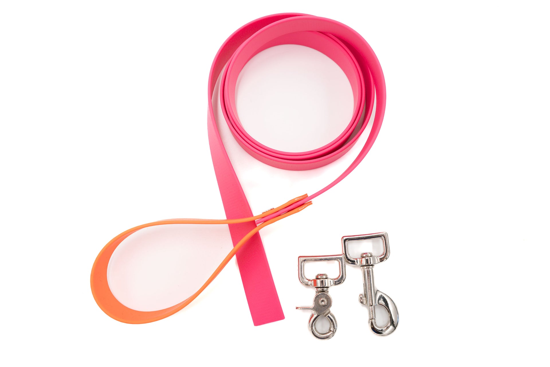 Waterproof Leash | Biothane | 6ft Passion Pink with Neon Orange accents and with your choice of clasp. Leash shown is unfinished - we'll add the clasp upon purchase.