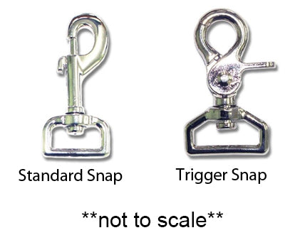 Trigger snaps - in place of traditional bolt-snaps. Trigger snaps are often easier to actuate for handlers wearing gloves or with mobility issues. They also have a lower failure and breakage rate, and are less prone to freezing up in cold weather than traditional bolt-snaps.