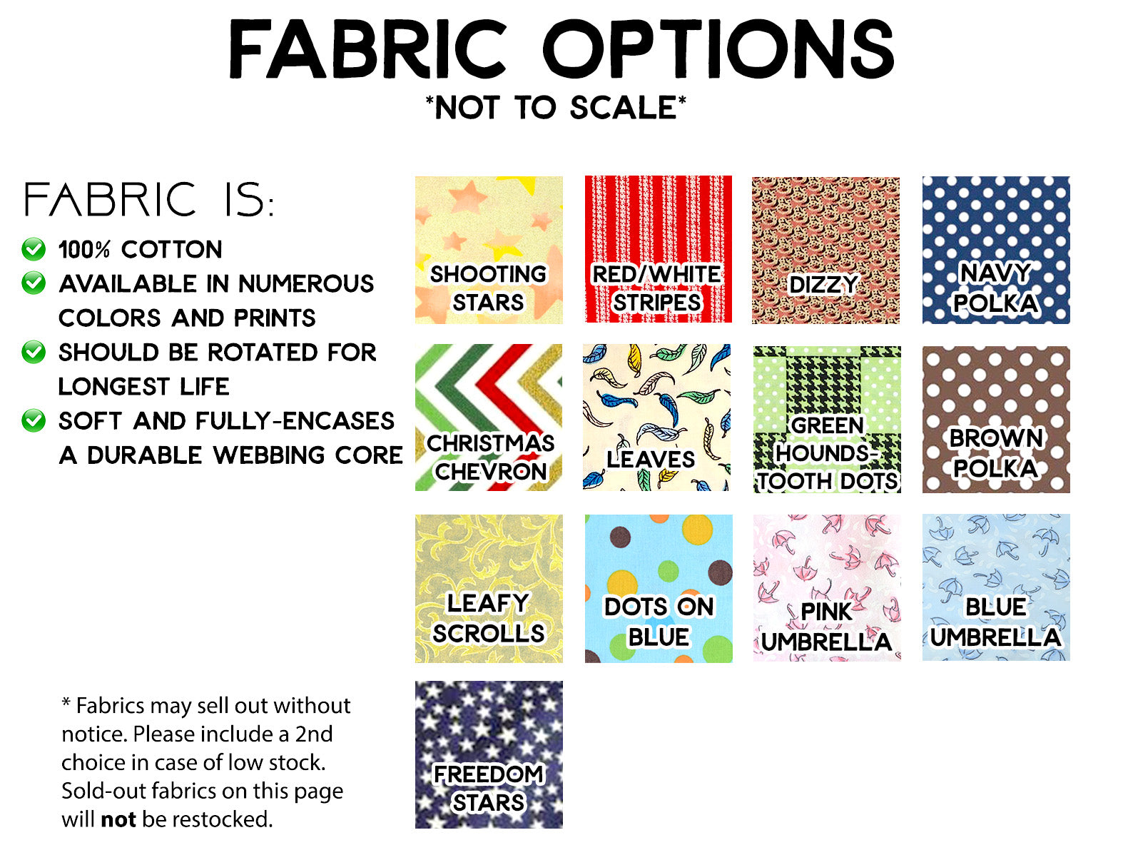 ** Note: the collars shown in the photos on this page are construction examples only. Some or all of these fabrics may be sold out. Please choose your fabric print from our current available prints as explained below