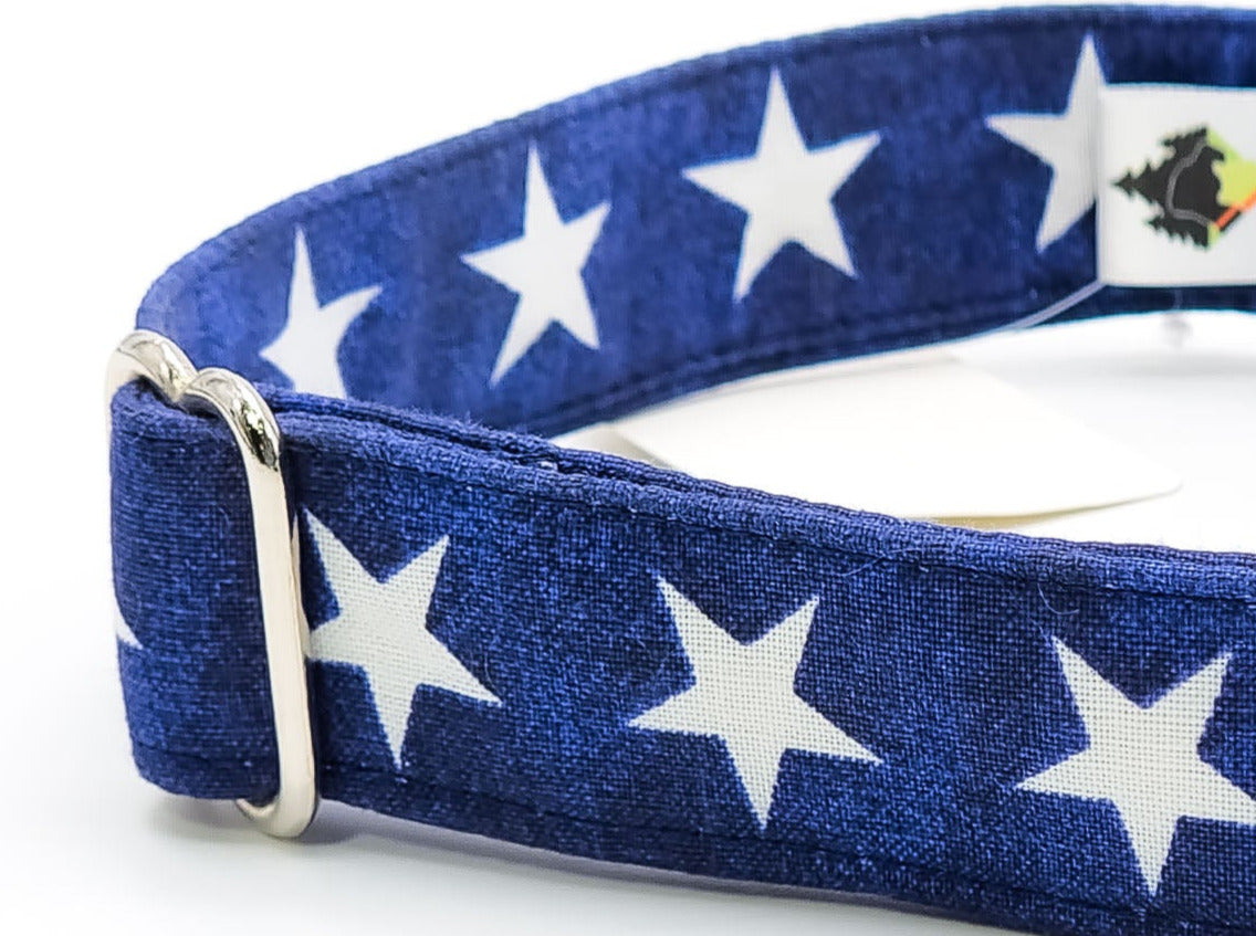 Stars on Navy | Cotton Fabric Flat Side Release Collar | Large 14"-23" in 1" wide