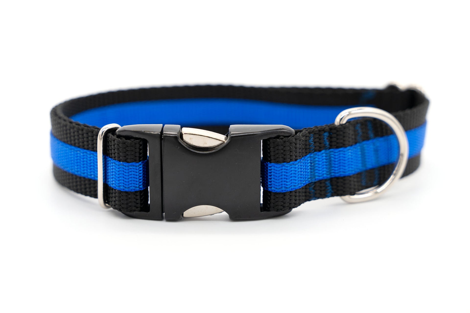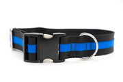 Thin Blue Line adjustable dog collar, large 14-22", 1" or 1.5" wide, black aluminum buckle