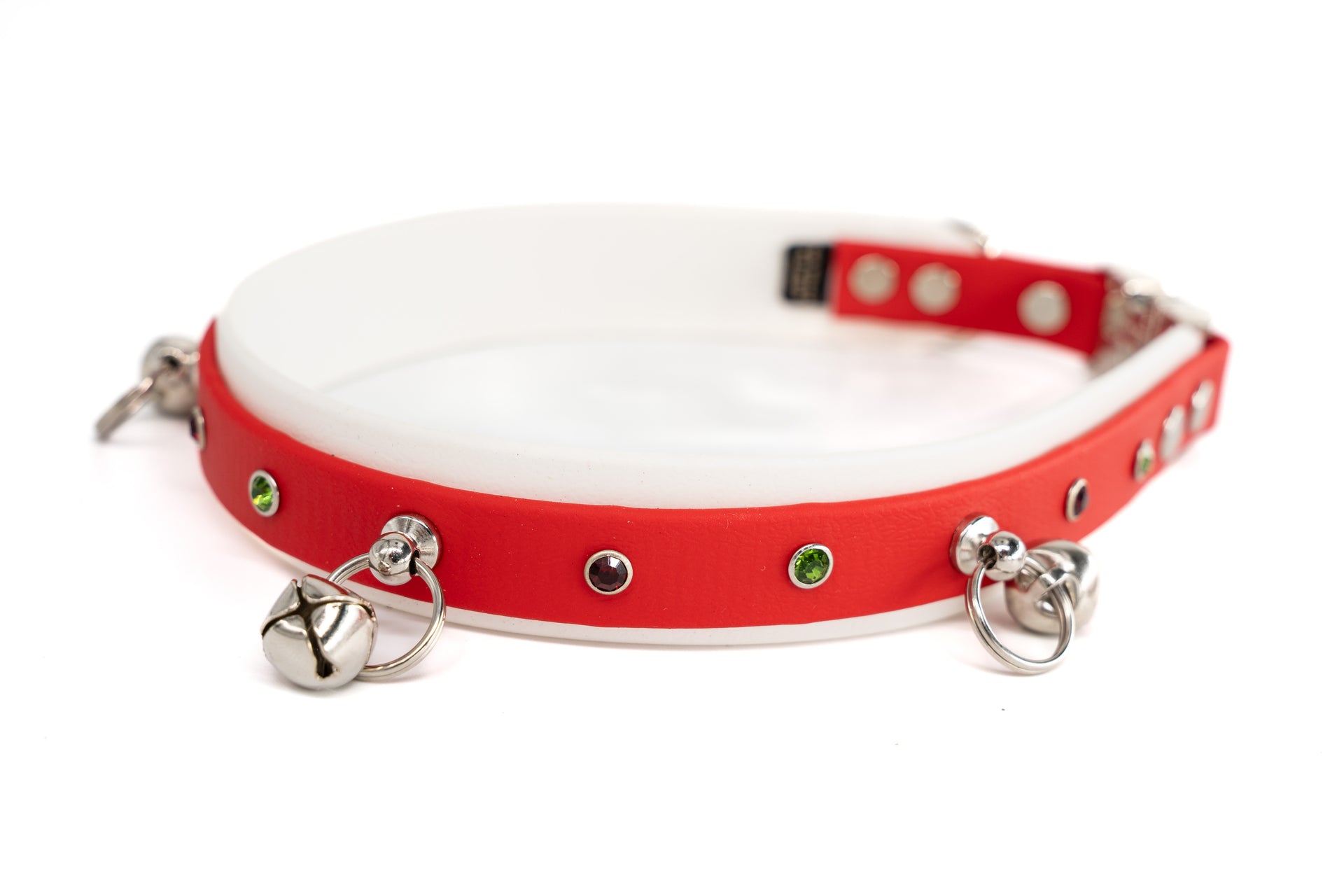 Waterproof Crystal Studded Collar with bells - Holly Jolly edition!